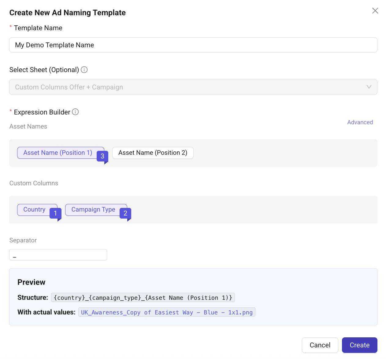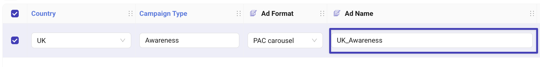 Ad Naming Templates let you generate structured ad names automatically based on the data inside your Launch Sheet.