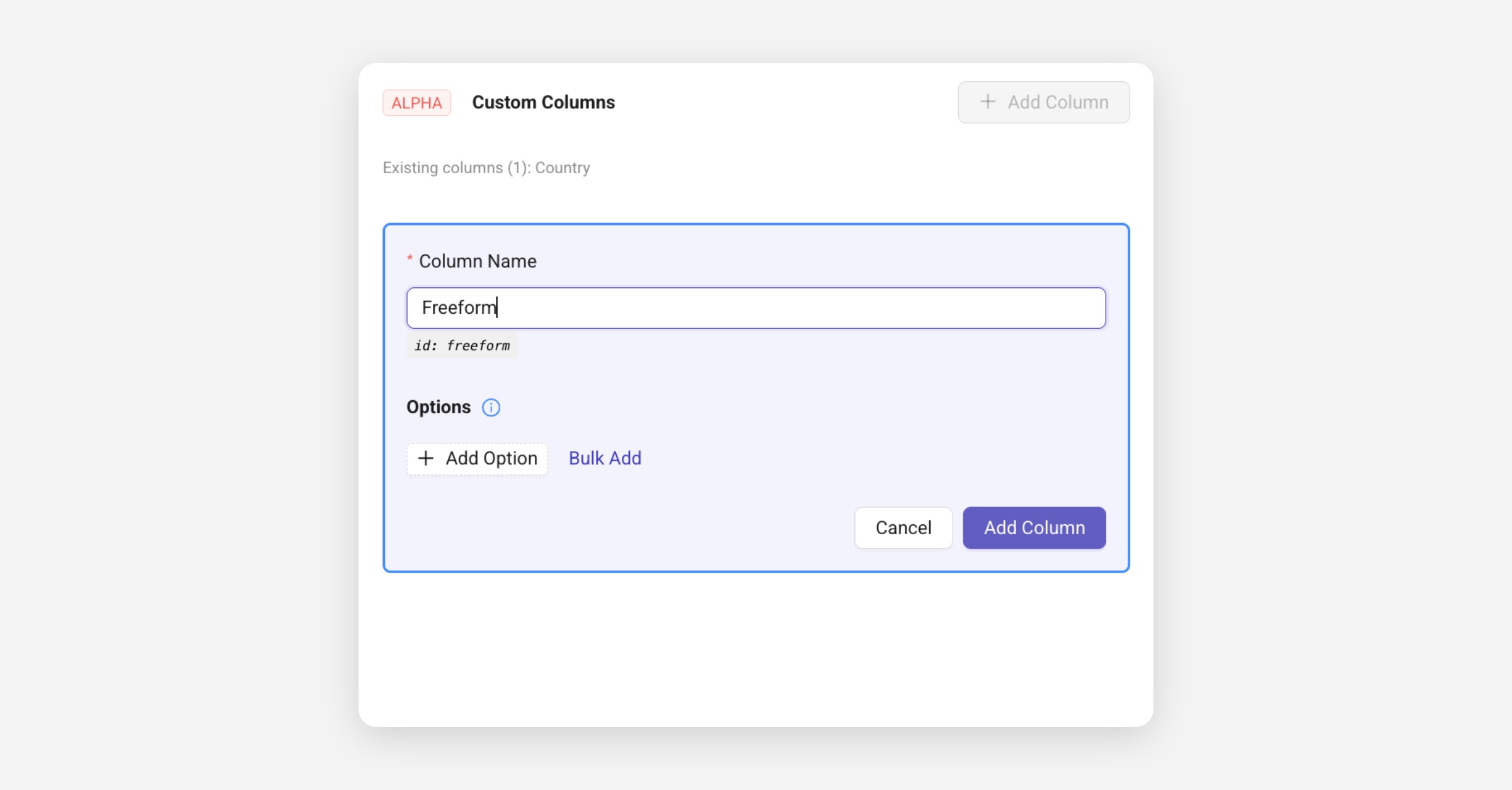 To create a text-style Custom Column, simply select the Freeform type. This creates a column where users can write anything, without predefined options.