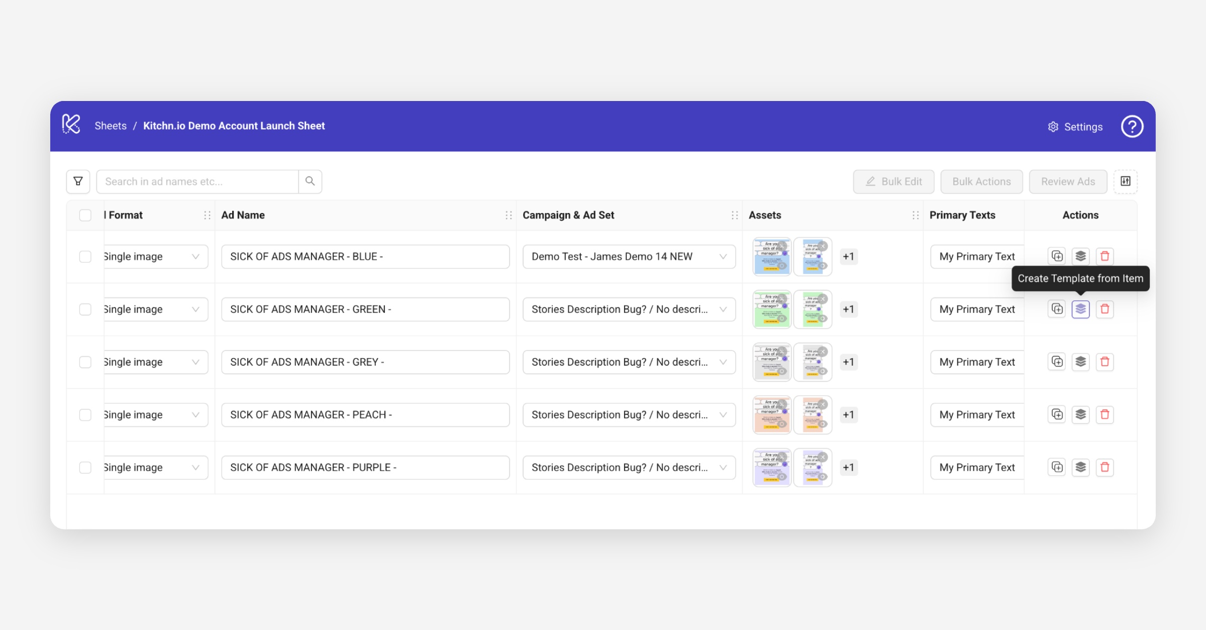You can also create templates directly from existing ads in a Launch Sheet.