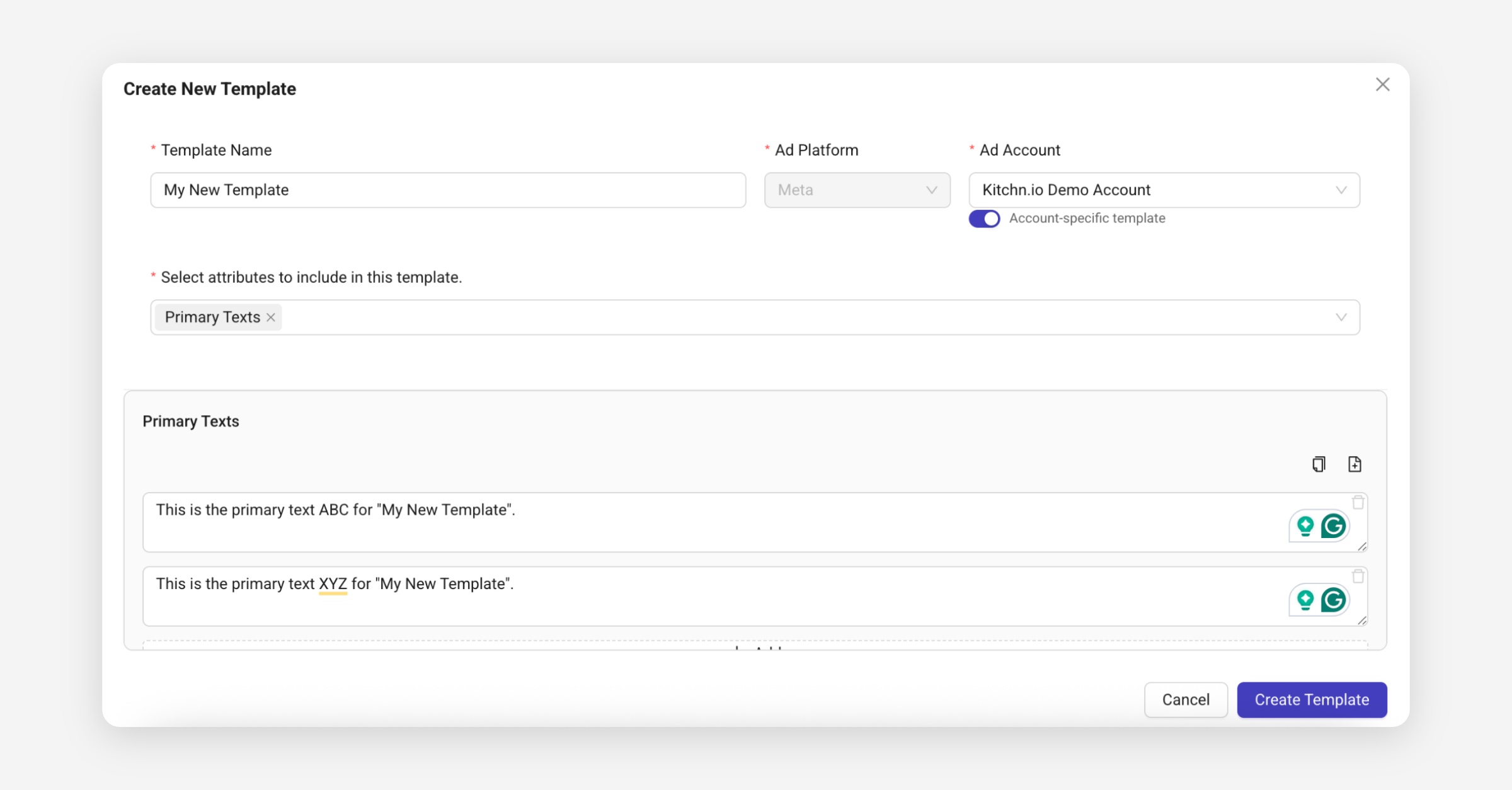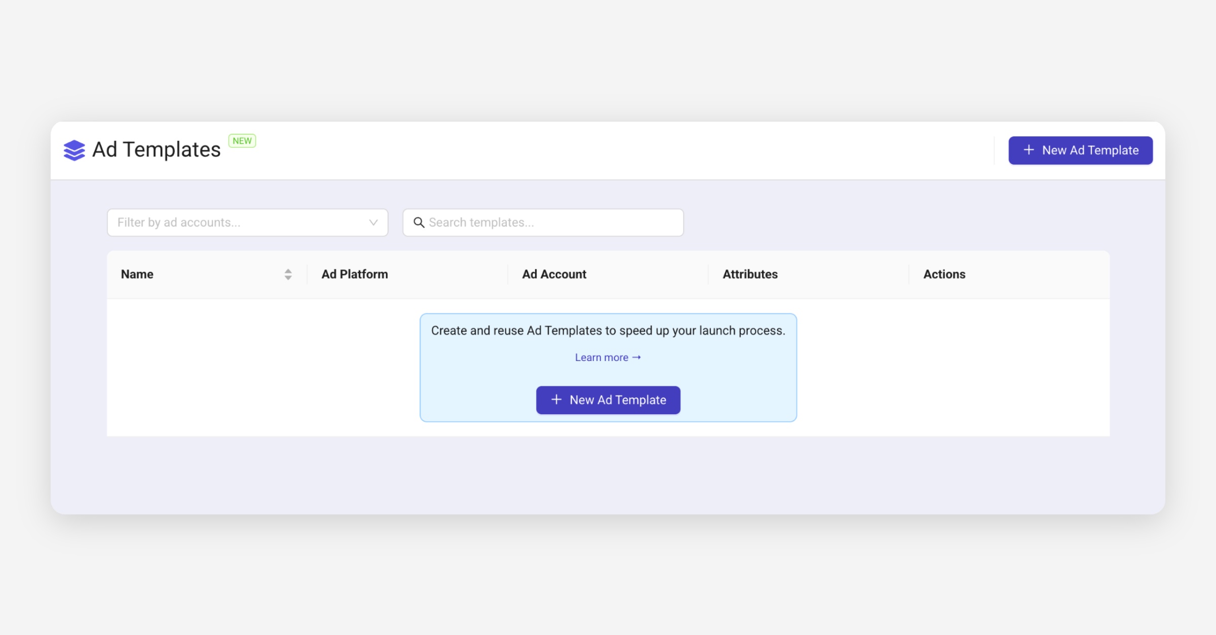 Create a new template using the + New Ad Template button