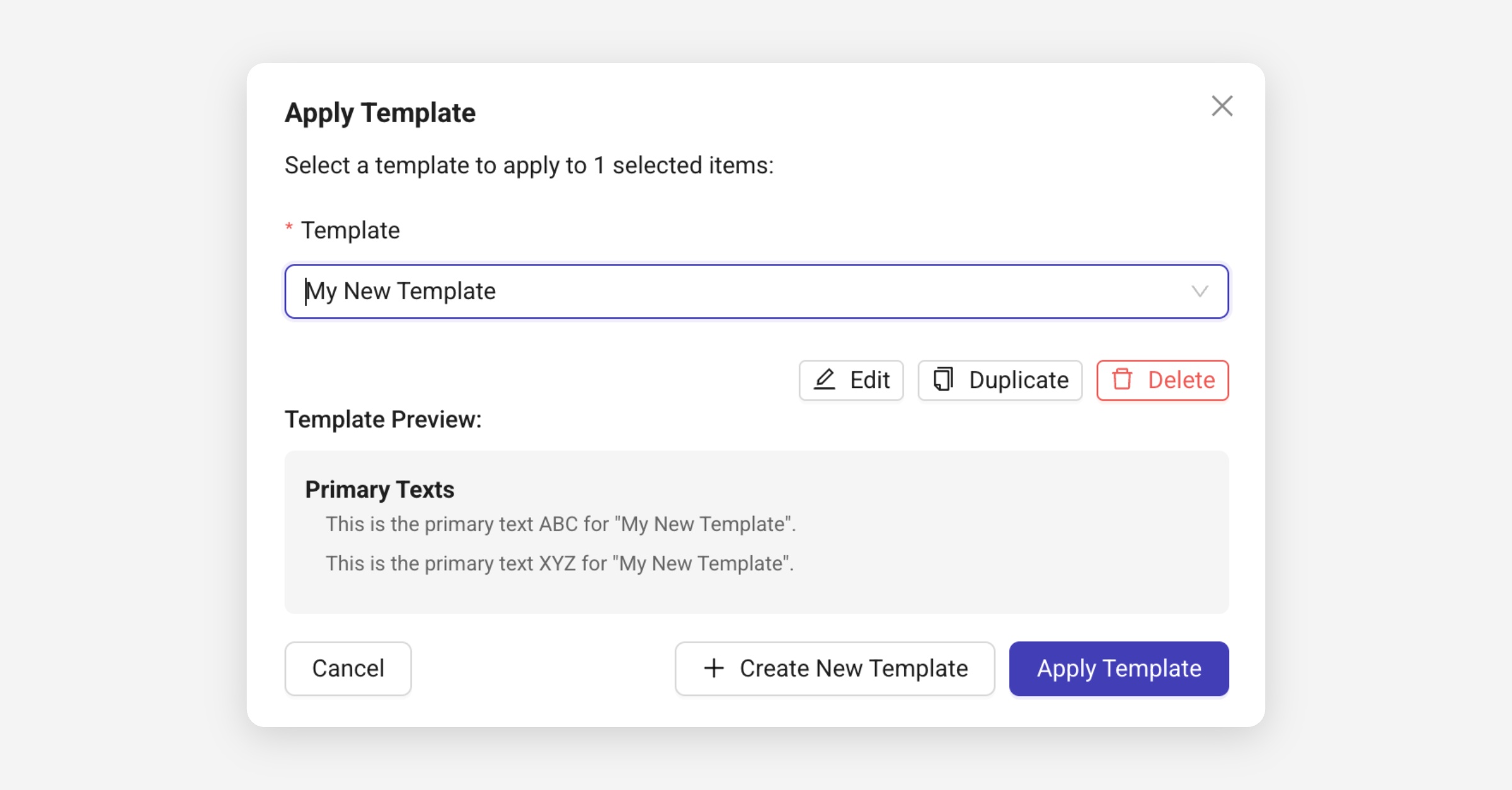 You can also Edit, Duplicate, or Delete the template directly from this window.