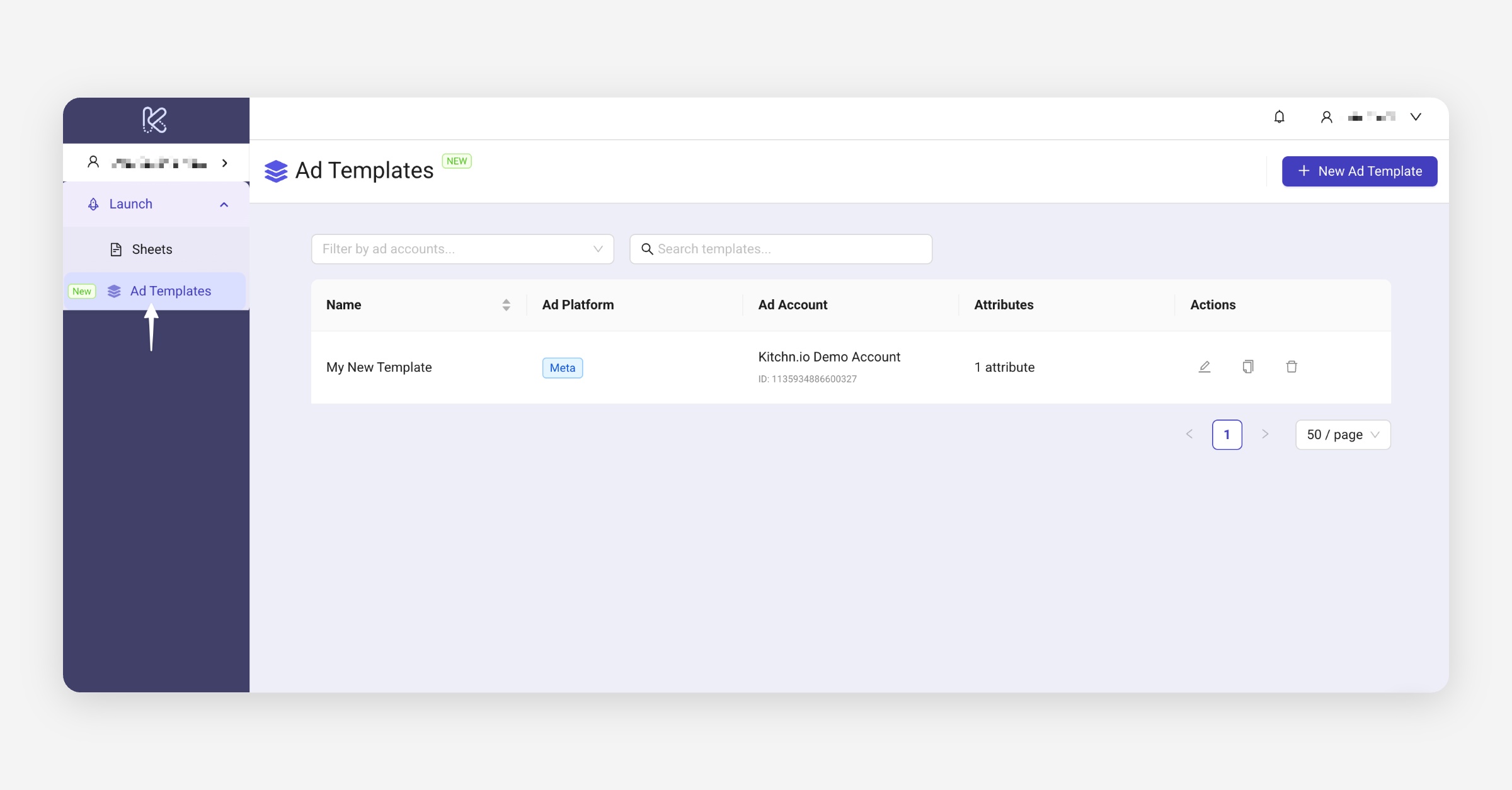 Filter templates by ad account