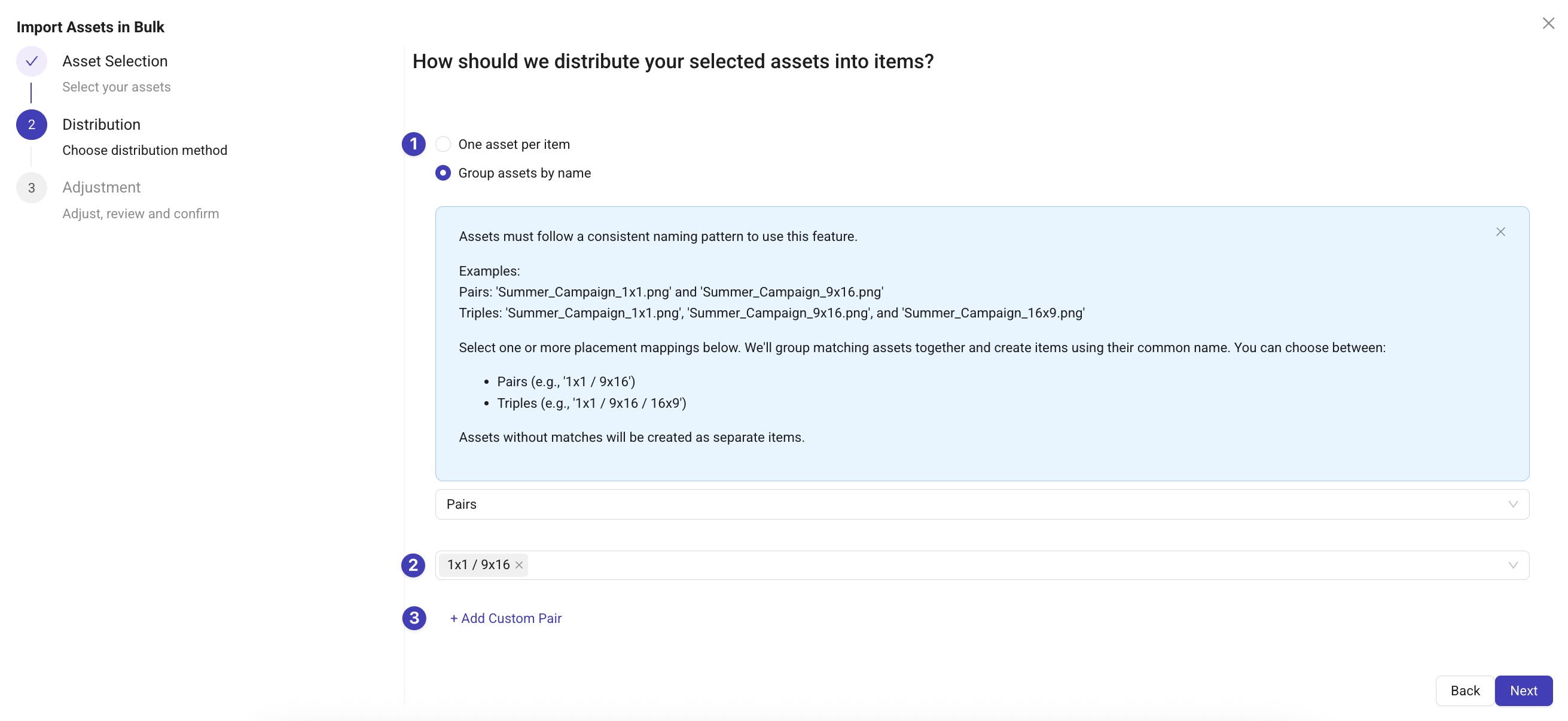 2. Group by 2 or 3 assets (If you're customizing placement by ratio)