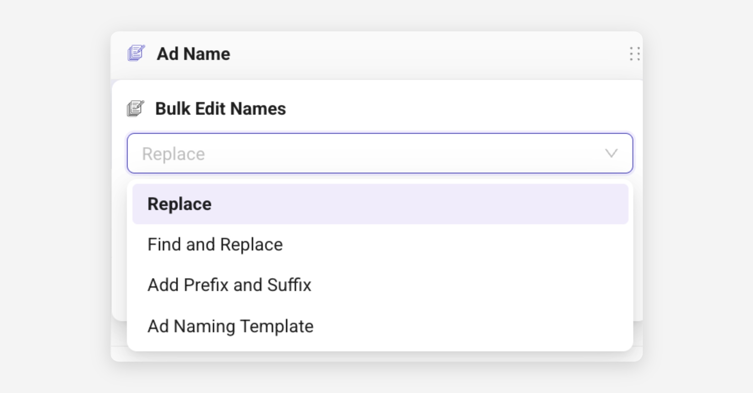 Ad names often require structured updates when building ads at scale. Launch Sheets include advanced tools that help you clean, adjust, or standardize names instantly across many rows.