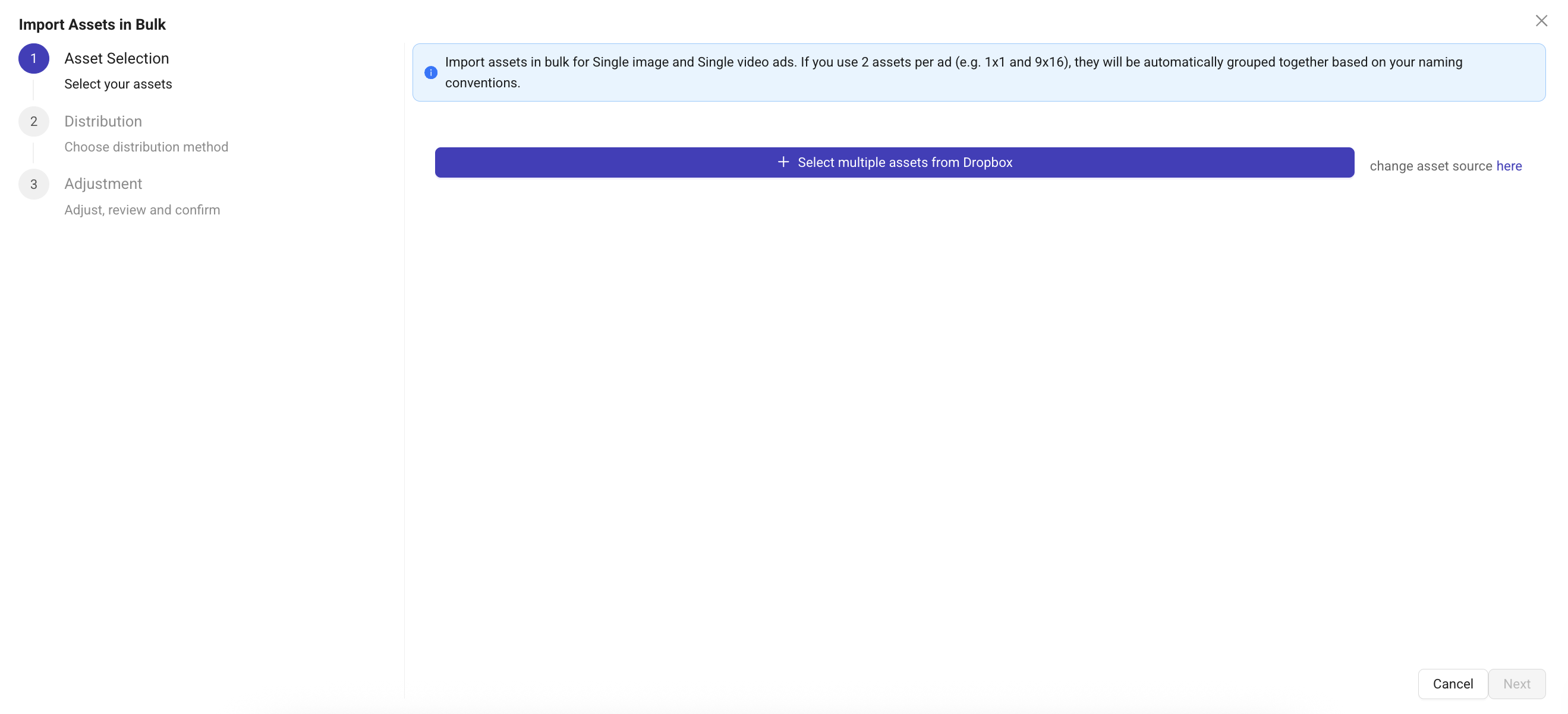 If you like, you can now also add more assets from a different folder using the 'Add more assets' button.