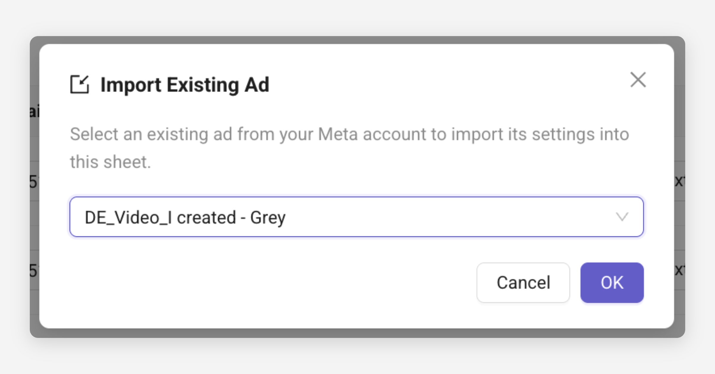 Click “Import Ad” at the bottom-left of the Launch Sheet.