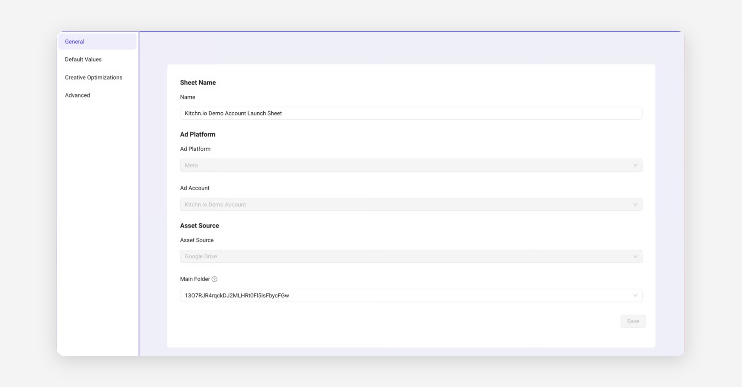This means if you want to use a 1:1, 9:16 and 4:5 asset where only 4:5 gets used for IG Feed, you can simply do this in the Sheet settings as shown below.