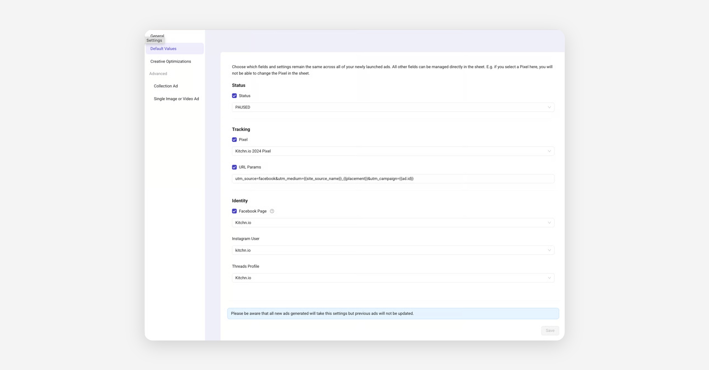 Please be aware that all new ads generated will use these settings but previous ads will not be updated.