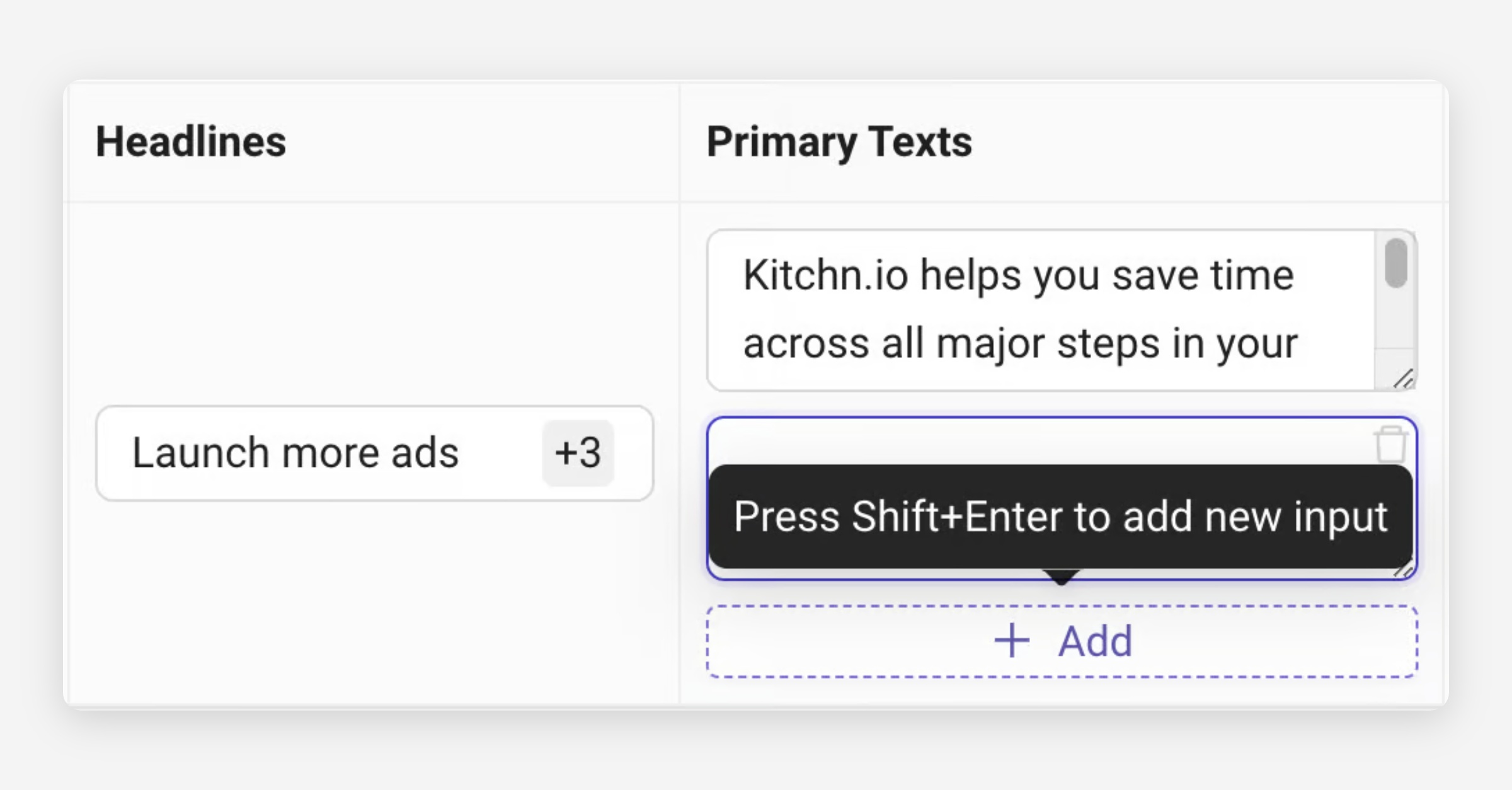 Enter no headline or one headline that will be used across all carousel cards, or one for each card.