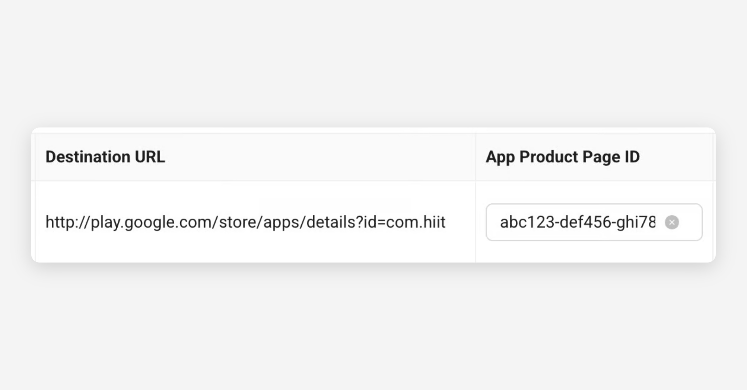 If you're a Mobile App Advertiser using Custom Product pages on the App store or Custom Store Listings on GooglePlay, you can add those in the App Product Page ID column.