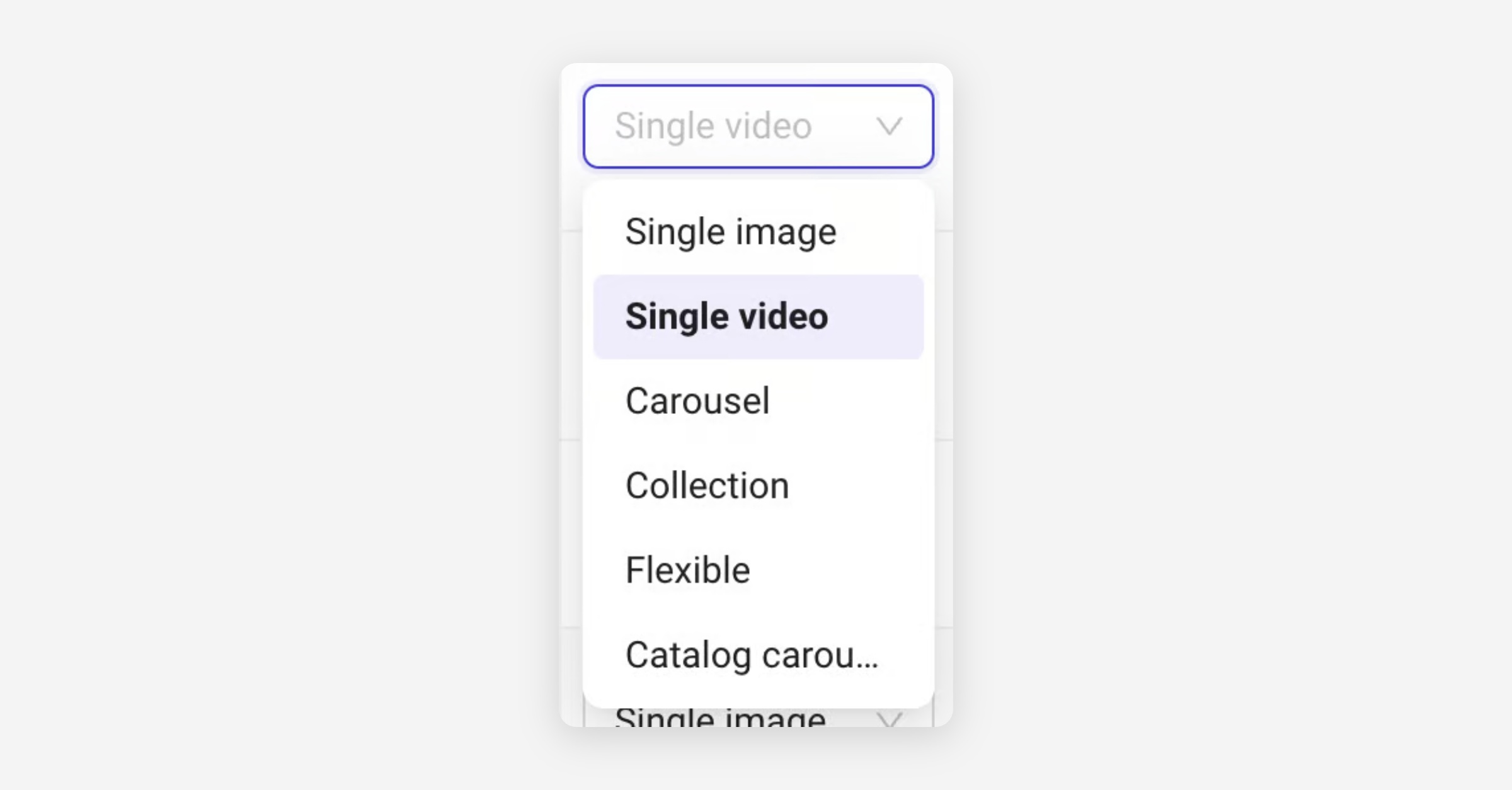 Select either Single Image, Single Video, Carousel, Flexible, Collection or Catalog Carousel.